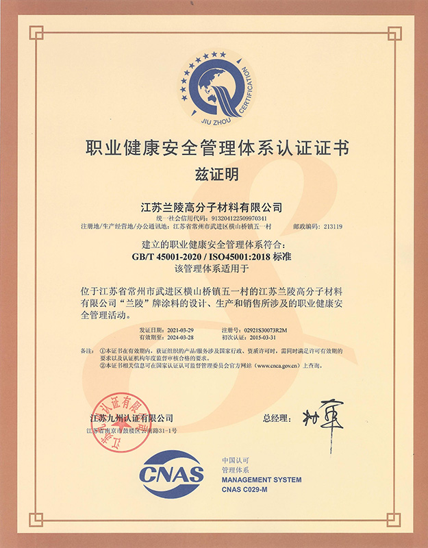 職業健康安全認證證書(高分子)