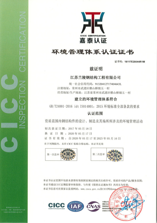 環境管理體系認證證書(鋼結構)