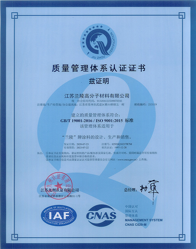質量管理體系認證證書(高分子)