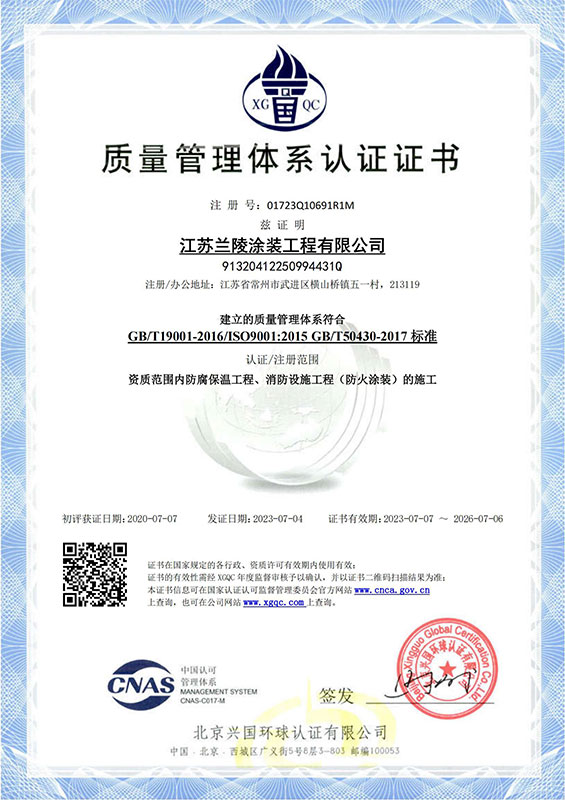 質量管理體系認證證書(涂裝)