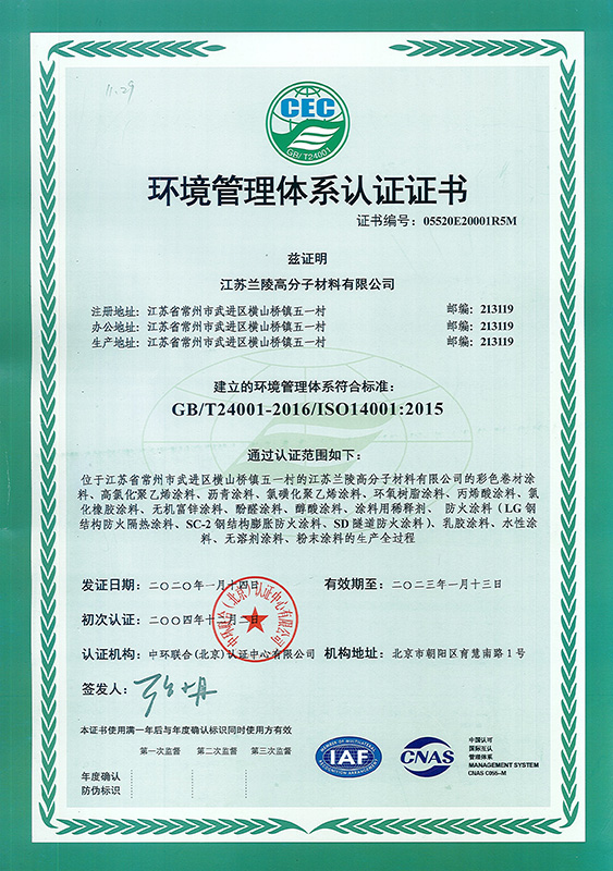 環境管理體系認證證書(高分子)