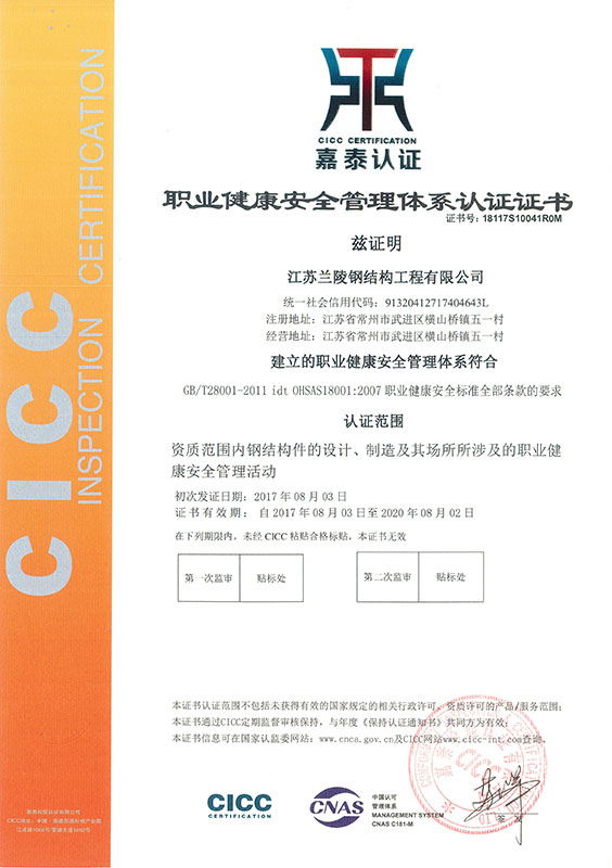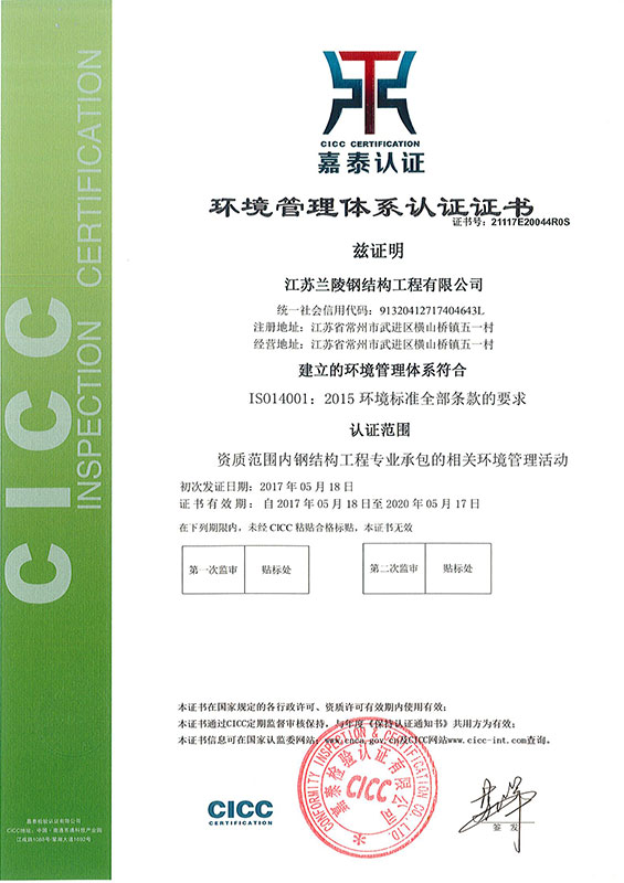 Environmental Management System Certificate (Steel Structure Company)